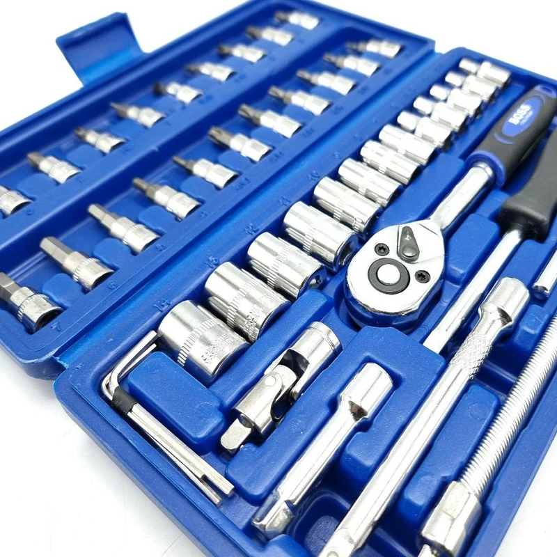 اگر قصد کاملکردن ابزارهای خود را دارید، میتوانید روی محصول فوق حساب کنید. این مجموعه 46عددی و شامل انواع سریهای پیچگوشتی، بکس و آچار اتصال به آنهاست. با دراختیارداشتن این محصول میتوانید بسیاری از پیچ و مهرهها را باز و بسته کنید. شرکت باس برای این مجموعهی 46عددی، سری پیچگوشتی دوسو، چهارسو، ستارهای و آلنی و 13 سری بکس با درایو 1/4 اینچ در سایزهای 4 تا 14 میلیمتر در نظر گرفته است. در کنار این سریهای مختلف، دستهی آچار بکس جغجغهای، دستهی پیچگوشتی، افزایشدهندهی طول و آچار T نیز مشاهده میشود. این مجموعه درون جعبهای پلاستیکی عرضه شده است. وزن کل این مجموعه 1.2 کیلوگرم و جابهجایی آن بسیار راحت است.